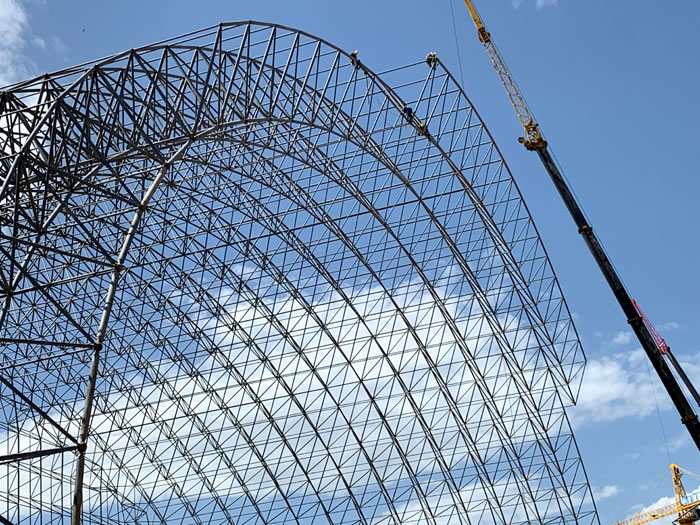 (2)网架加工前应对现场尺寸进行复测,确认无误后方可进行加工、安装;网架制作、运输、安装应遵守《空间网格结构技术规程》JGJ7-2010、《钢网架运城螺栓球节点》JG/T 10-2009、《钢网架运城螺栓球节点用高强度螺栓》 GB/T 16939-2016、《运城钢结构运城工程运城施工规范》 GB50755-2012、《运城钢结构运城工程运城施工质量验收标准》 GB50205-2020。